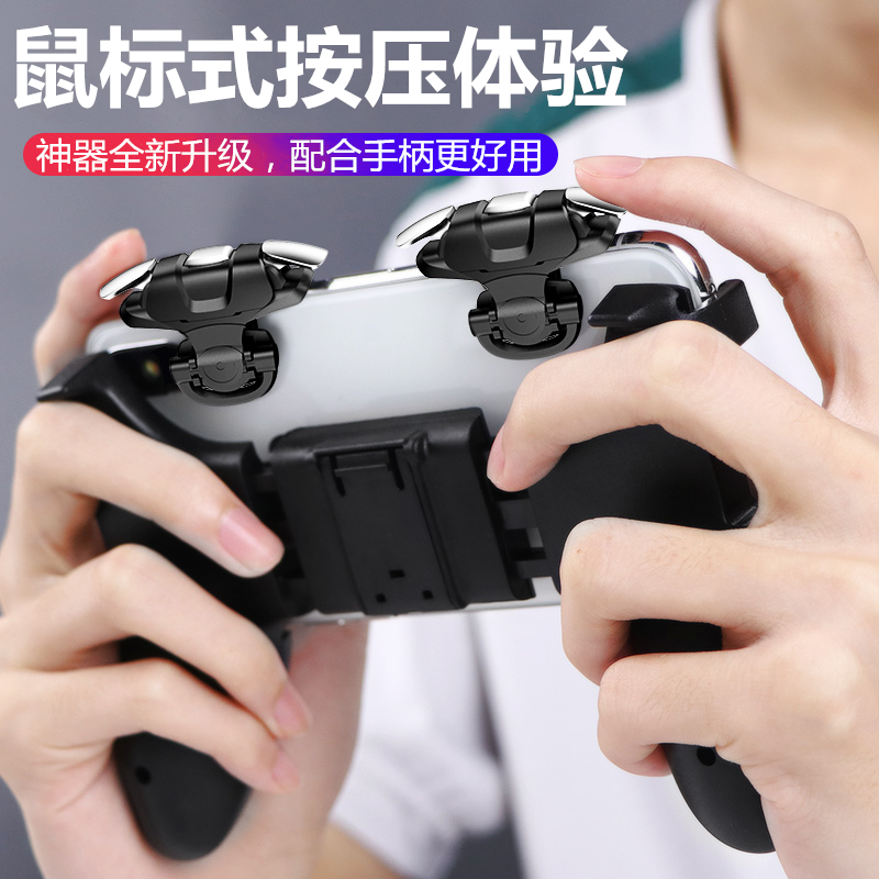 Eat chicken artifact Chicken King three generations of mechanical alloy metal button mobile game handle peace automatic pressure grab gun Elite wilderness action Four finger linkage burst point regardless of the left and right peripheral hanging auxiliary