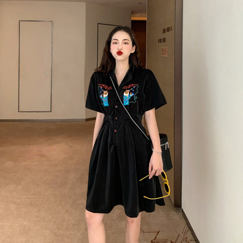 Blank 1 M (can be sweetened with salt dresses large size fairy air dress in summer wearing short skirts new power) L (skirt French style retro little crowdsourced European and American large size and fat mm slightly fat and hot girl)
