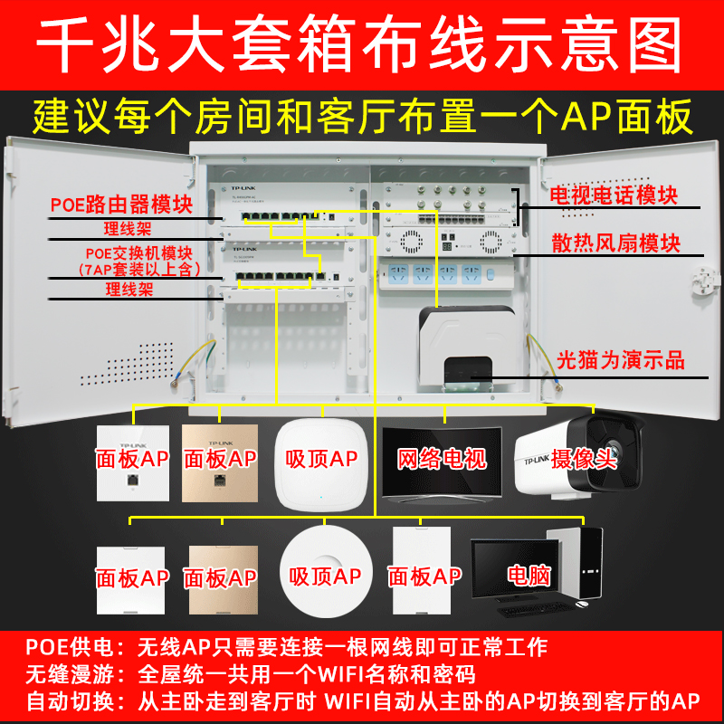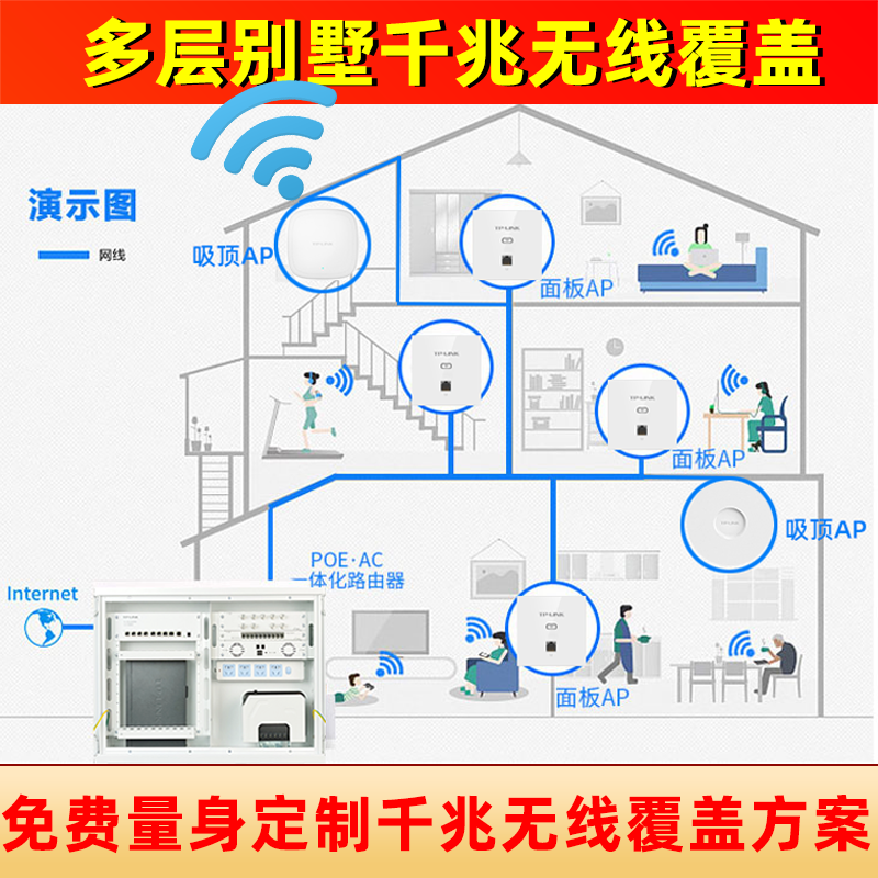 4 rooms 2 halls WiFi 5 Gigabit box 1200M panel×5