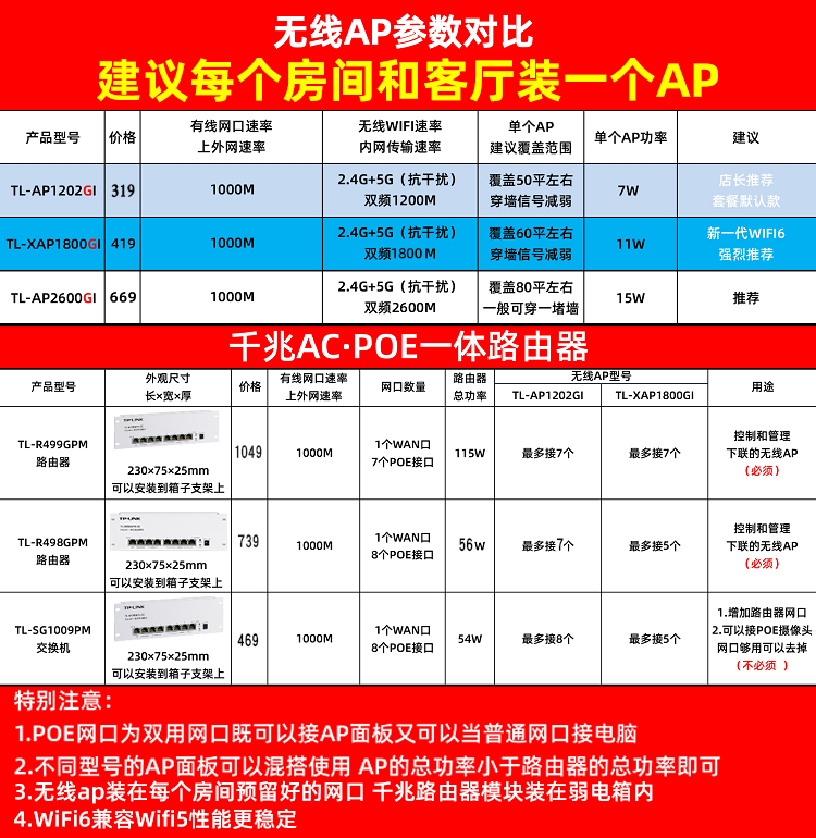 4 rooms 2 halls 499 boxes WIFI6 panel 5 1800M