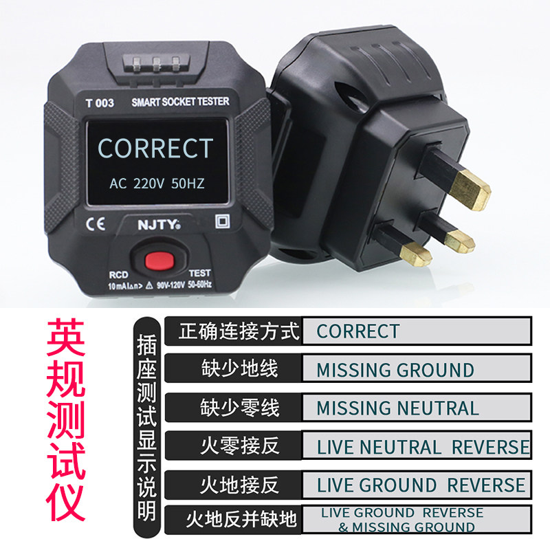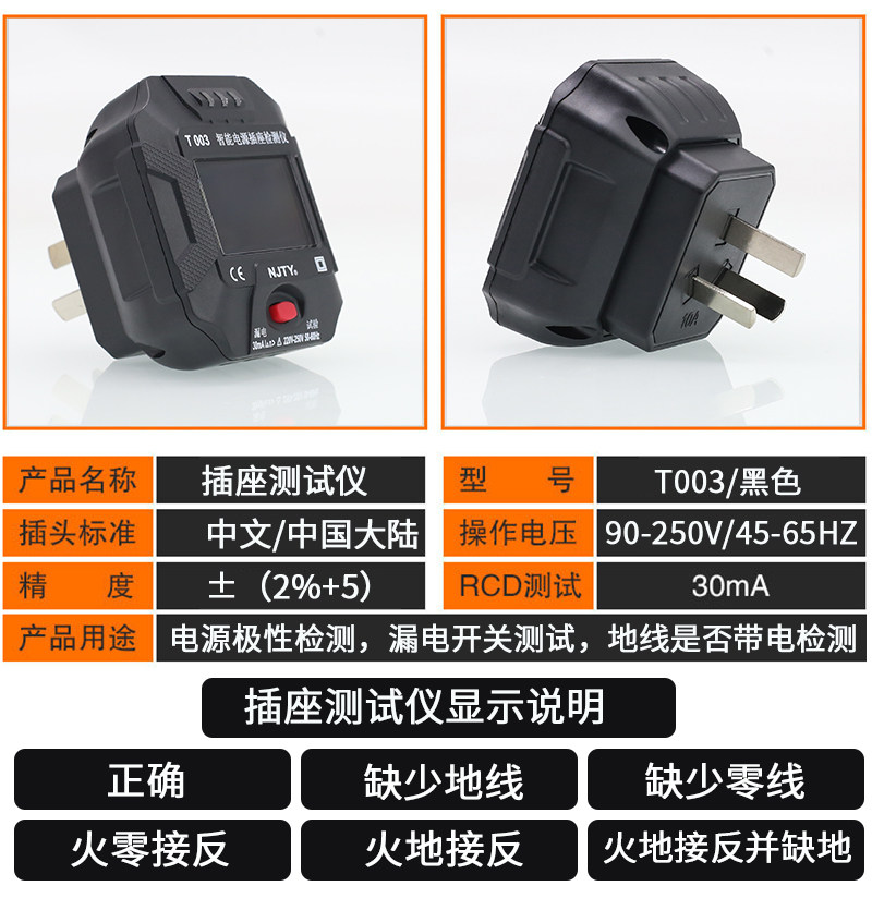 T003 white digital display socket tester 2 white T003 price T003 black digital display socket tester 2 black T003 price British standard digital display T003 English display European standard