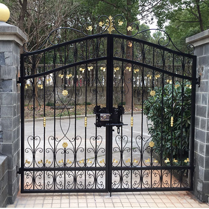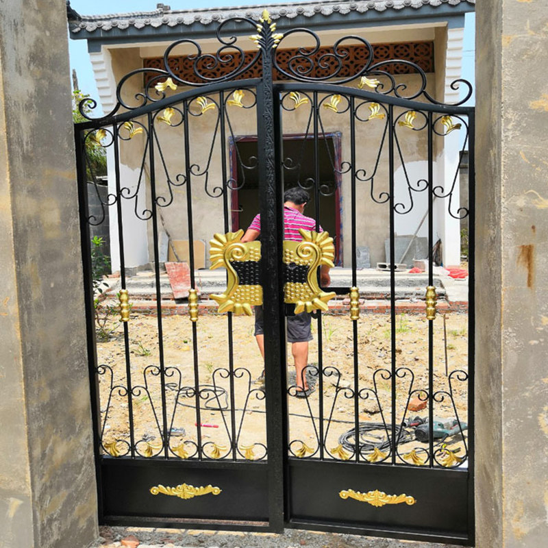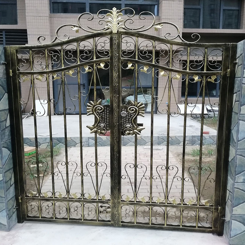 Courtyard door Outdoor Villa Iron Art gate into double open door village fence door opening custom
