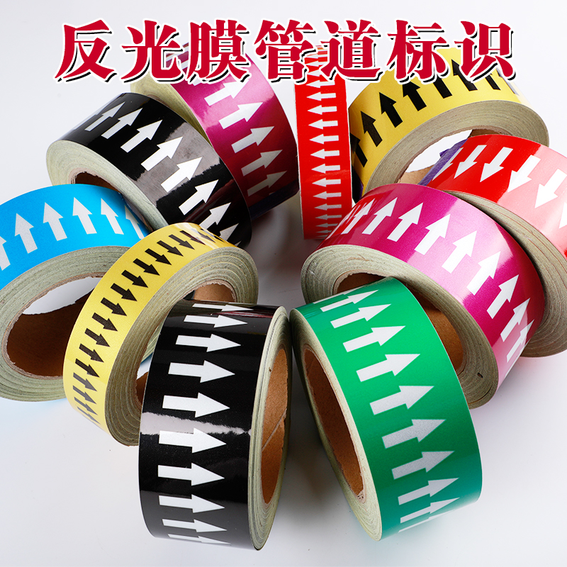 Pipe label sticker National standard reflective film Fire chemical flow to the shear head arrow indicator color ring Pipe label sticker Compressed air steam advertising sticker label warning plate
