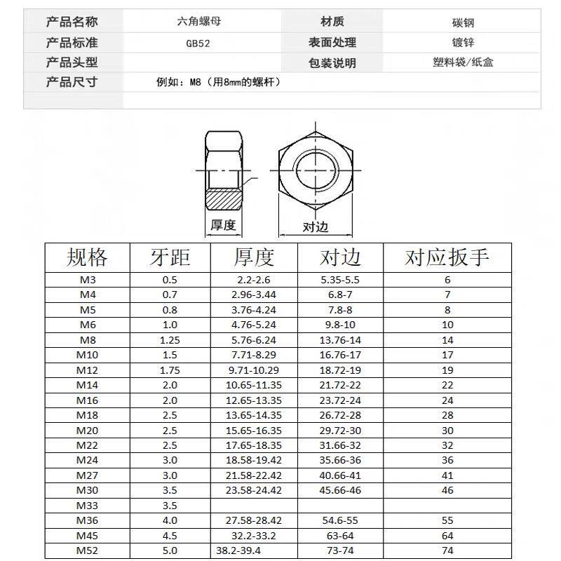 4 Grade 8 Galvanized nut Hexagonal nut Screw cap M1 6M2M3M4M5M6M8M10M12M14M22M30