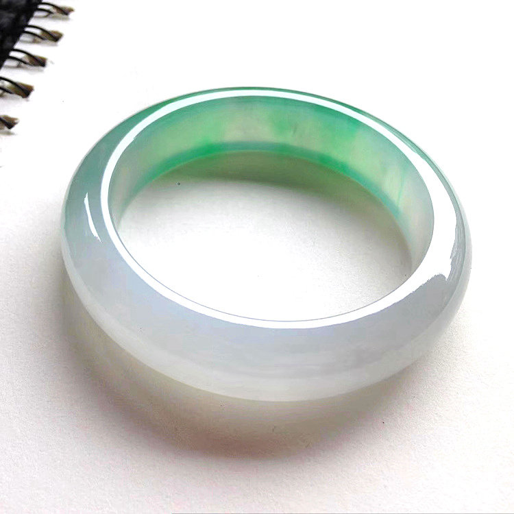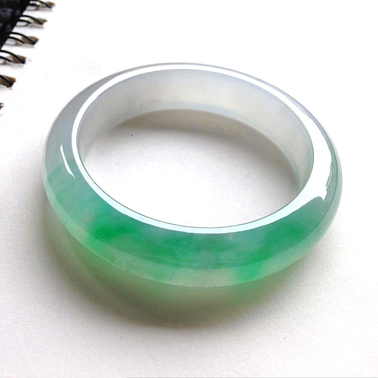Jade bracelet round bar pendant natural Burmese old pit A cargo ice species floating sun green flower jade bracelet positive circle jade bracelet