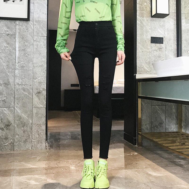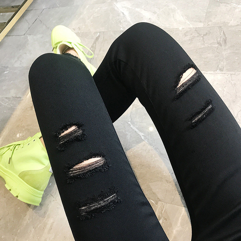 Broken Cave Inner Lap Pants Woman Outside Wearing Spring Autumn 2021 New Black Display Slim Tall Waist 90% Pants Slim slim black pants Summer