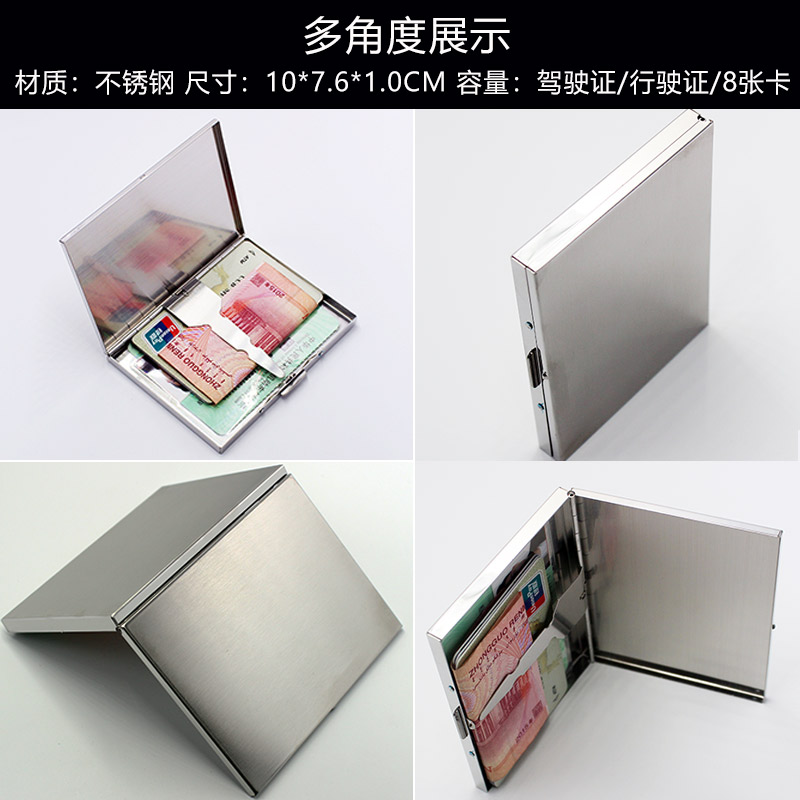 Stainless steel card pack thin metal driver's license box anti-magnetic anti-theft brush anti-wallet male and female stainless steel card bag