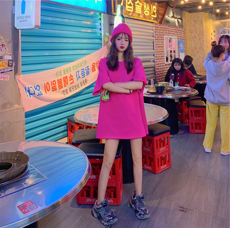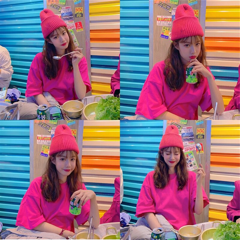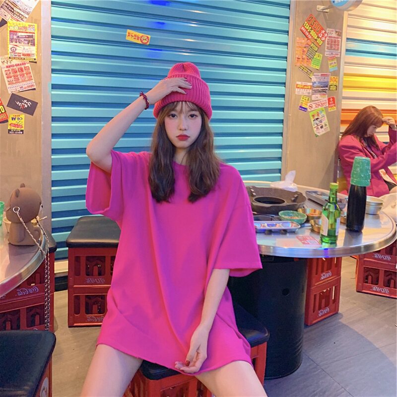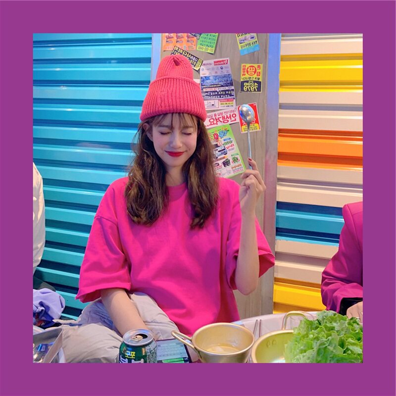 Rose red short sleeve T - shirt Han Edition 2022 summer new pure color tops and loose T - shirt half sleeve tide