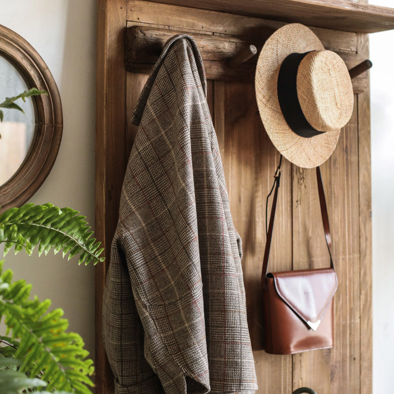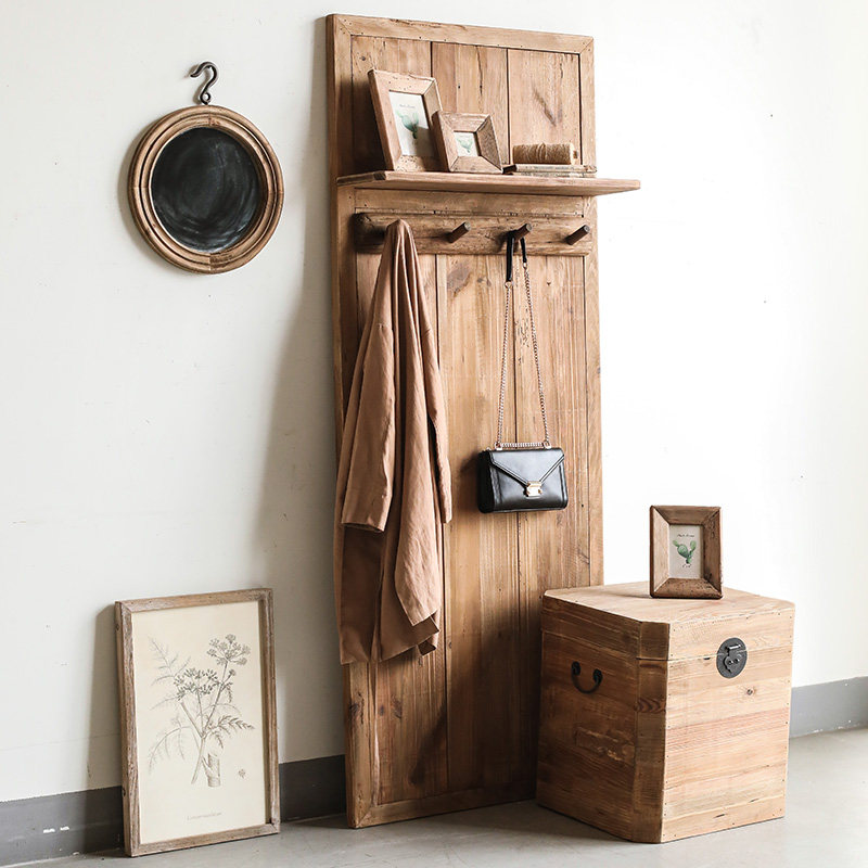Left bank wheat field Nordic countryside log art clothes hat hanging rack leaning against wall clothes hat shelf on the floor People stay in the house