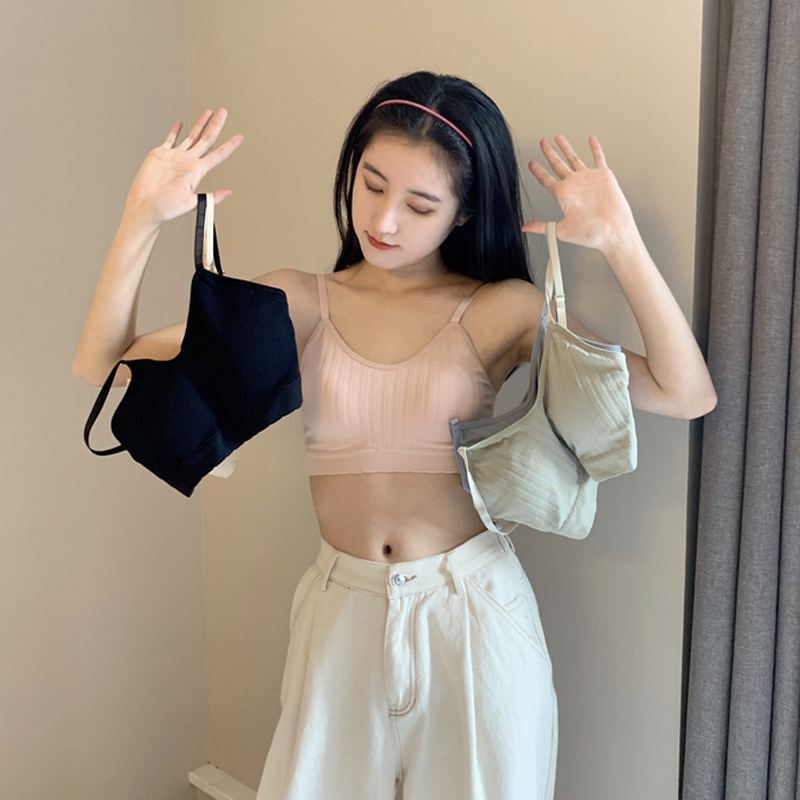 Spring 2021 new Korean version of the rimless gathered bra female students anti-walking bare bottomed chest-wrapped sports underwear tide