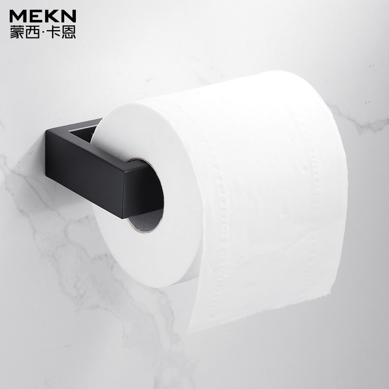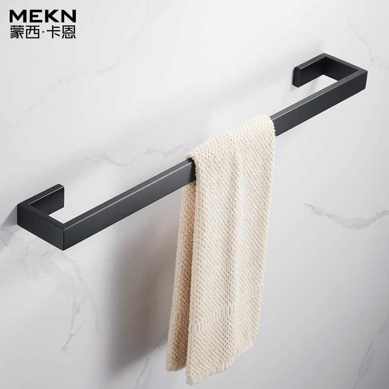 Black square four-piece set combination-perforated black square single-pole towel rack-free from punching black square towel ring-free from punching black square paper towel rack-perforated black square paper towel rack-free