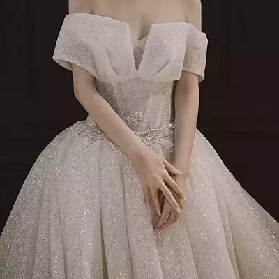 Star bride Super fairy dream master wedding dress 2021 New temperament luxury big tailing Mori simple atmosphere thin