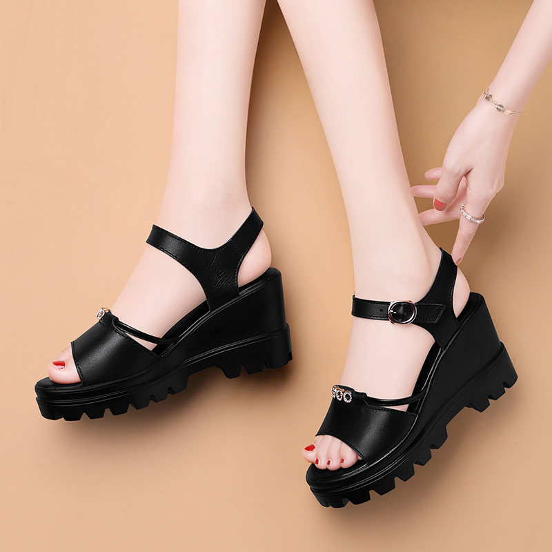 Genuine leather sandals women 2022 new summer 100 hitch 100 hitch heel with middle aged mother shoes pine pastry thick undersize women's shoes