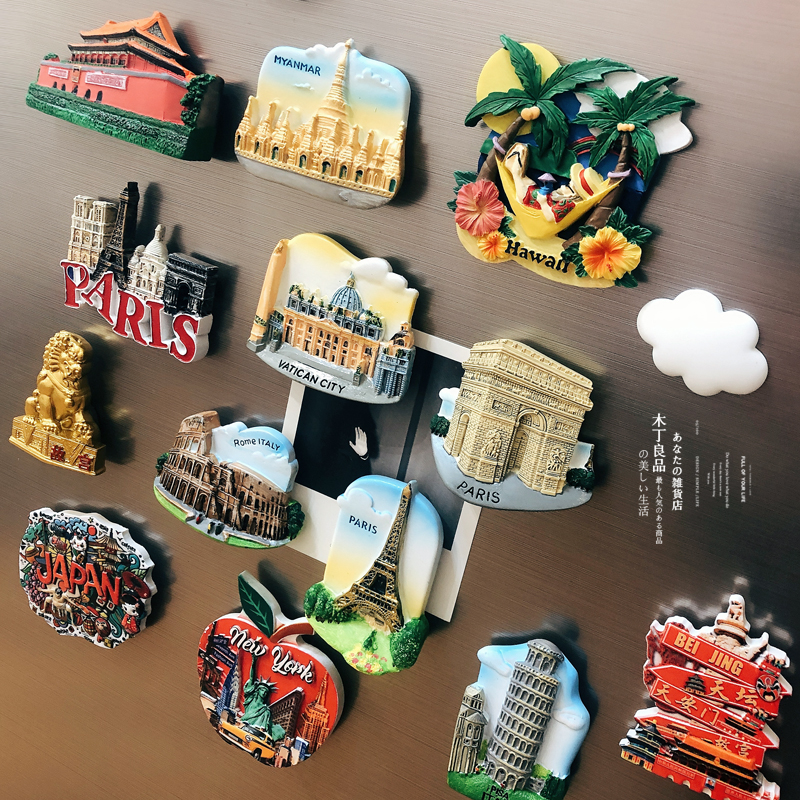 World scenic spots travel souvenir refrigerator stickers 3D three-dimensional message stickers Refrigerator door decoration stickers countries travel magnets