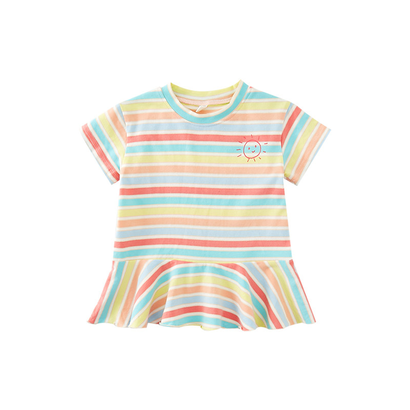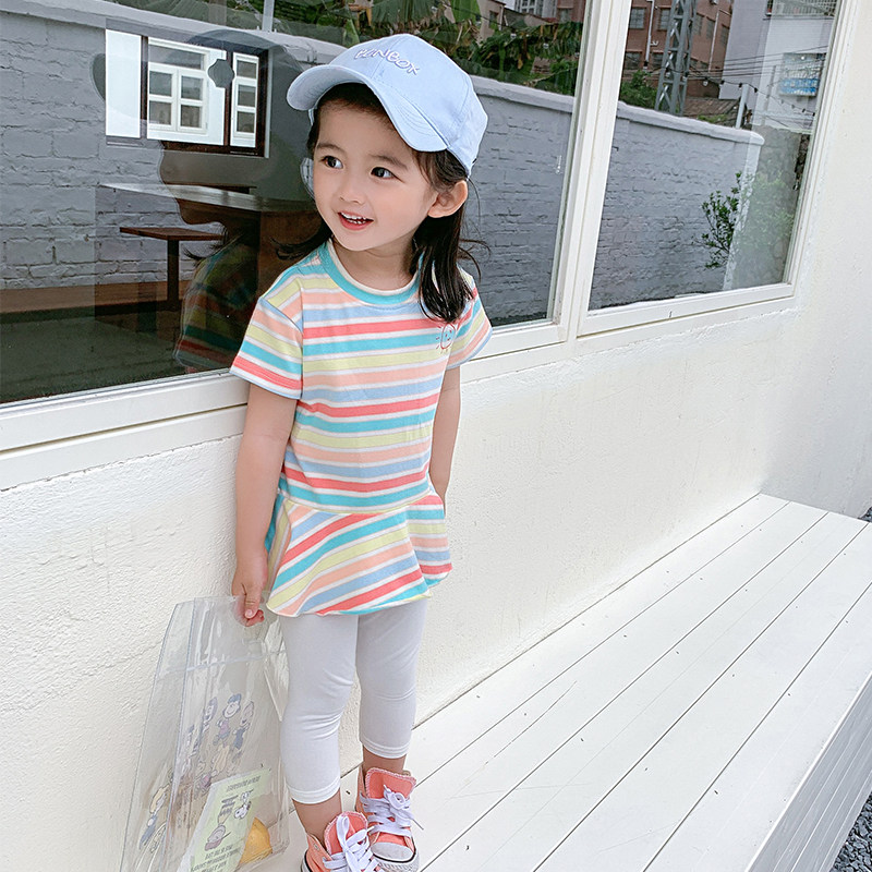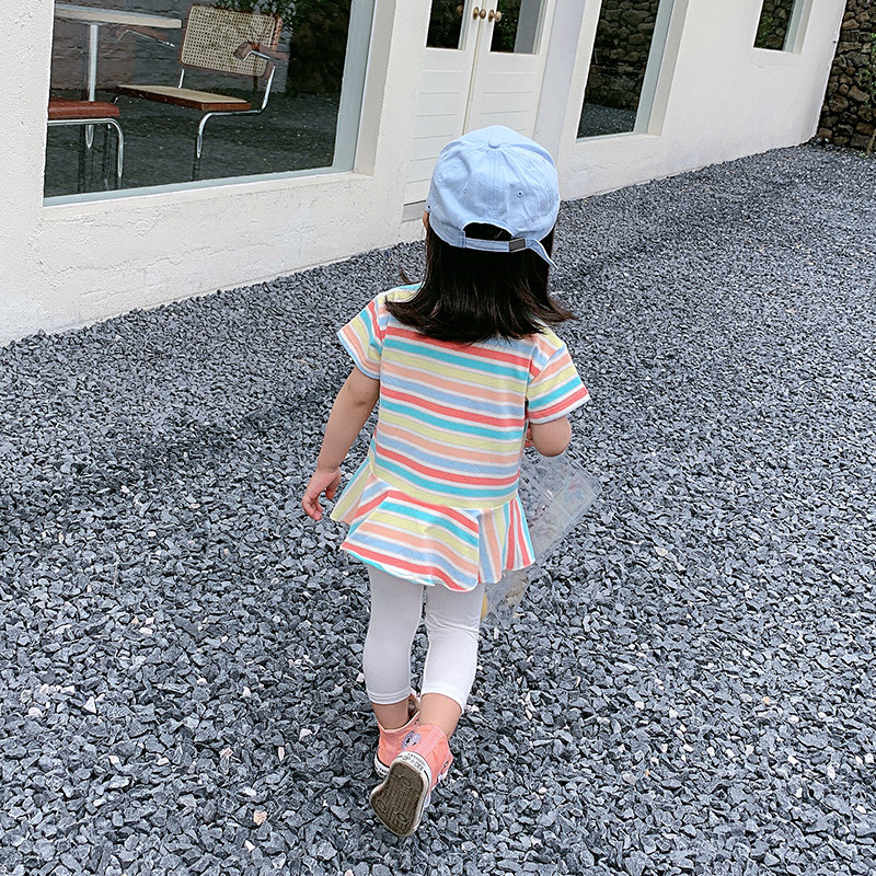 Yang Mejia Children's Clothing 2022 Summer Dress New Girl Stripe Crash Color T-shirt Children 100 Hitch Lotus Leaf Side Blouse
