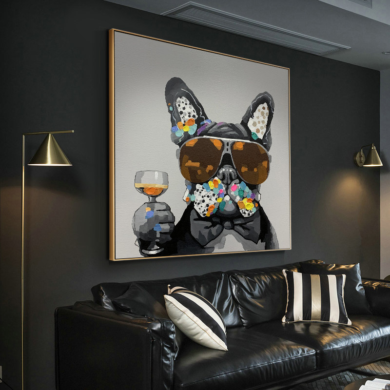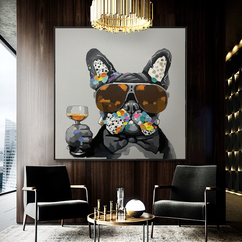 Pure hand-painted oil painting animal zodiac hanging painting cute dog decoration painting children's room bedroom mural is greatly handmade customization