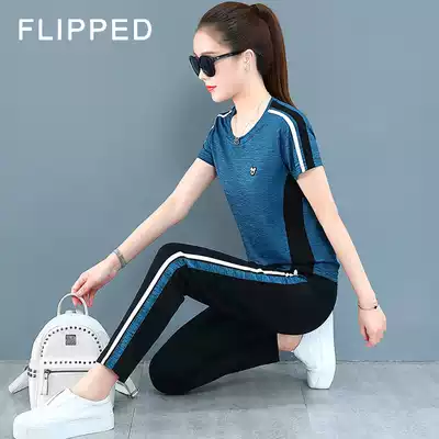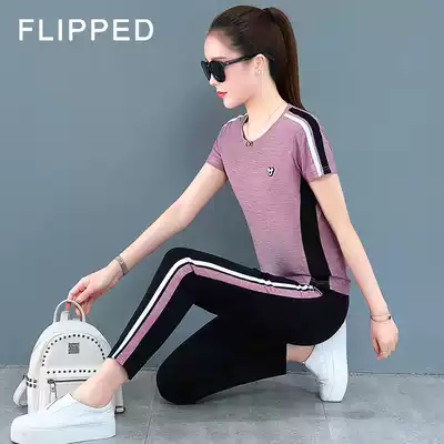 Felide Summer Sports Set Women 2021 New Age Slim Slim Contrast Color Thin Casual Two-Piece Tide