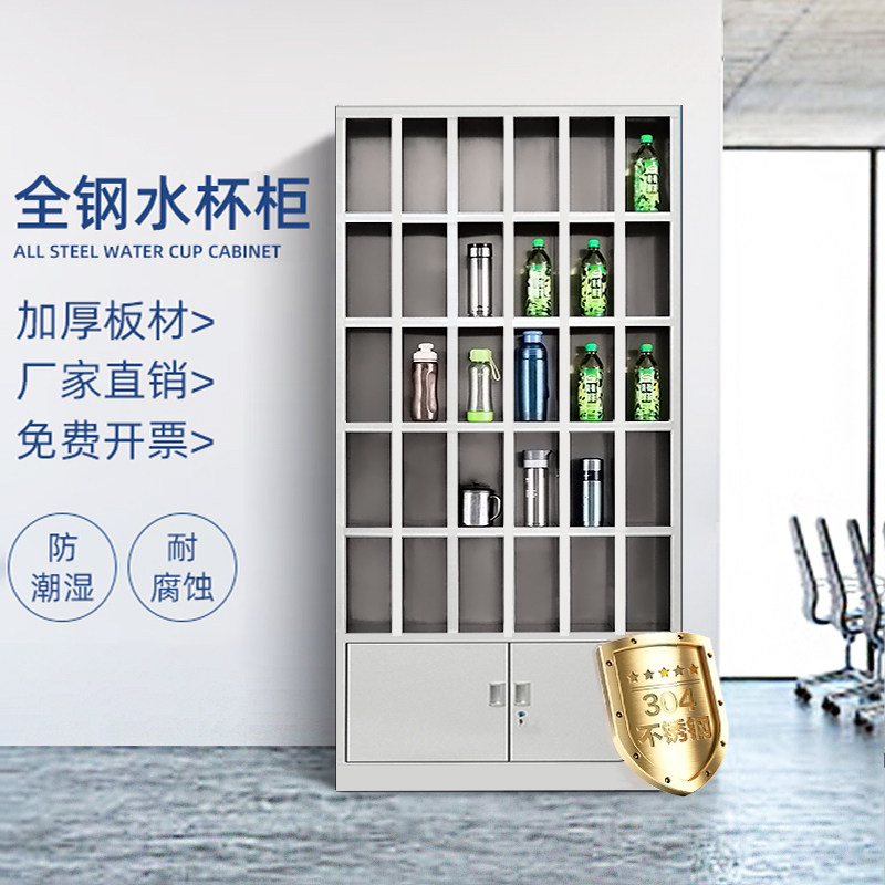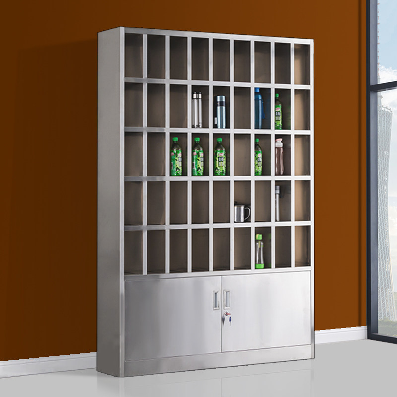 Stainless steel cup cabinet Factory staff lounge pantry cup cabinet workshop multi-grid cupboard storage rack