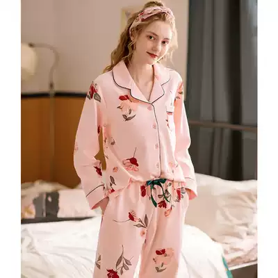 Fenteng new cotton pajamas women's spring and autumn long-sleeved trousers lapels can be worn outside cotton cardigan home service suit