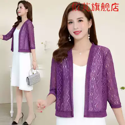 Women's large size spring coat jacket short version of open jacket outside Joker small shawl lace shirt air-conditioned clothing