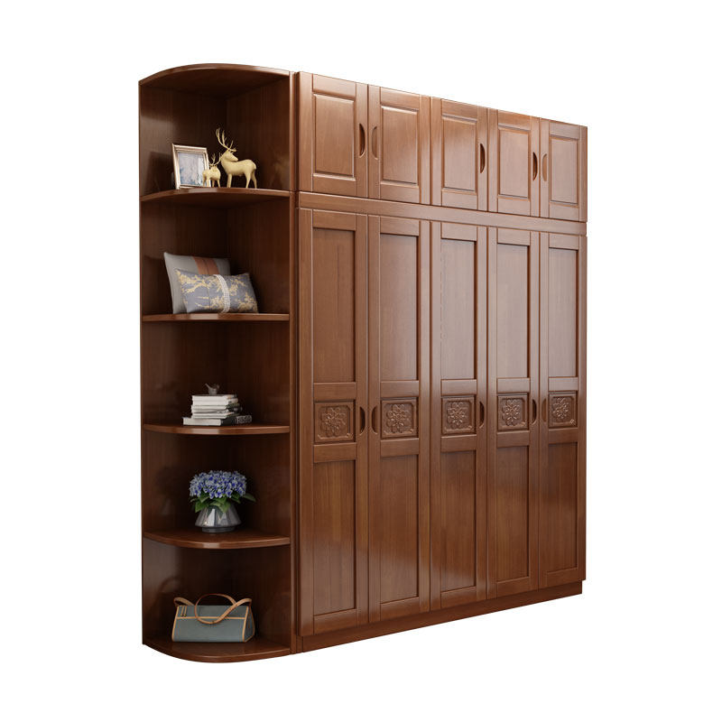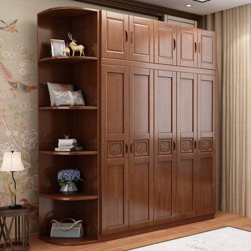 Chinese-style modern minimalist solid wood wardrobe 3456 door combination bedroom economical cabinet Dapingshu household large wardrobe