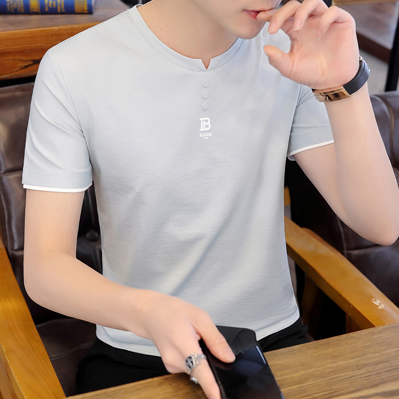 Men's T-shirt short-sleeved 2020 new trend white T-shirt Korean version of the Harajuku fashion card round collar summer half-sleeves