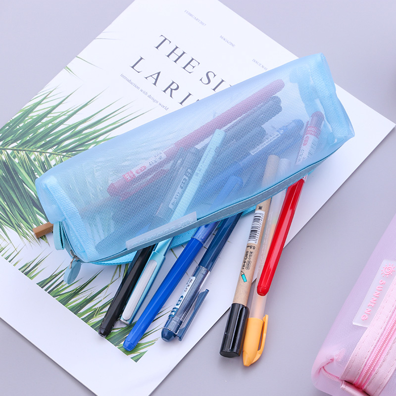 Cloud ink transparent pencil bag Student stationery bag Grid male and female students mesh Middle school students High school students College students Pencil bag Korean version small fresh simple pen box Large capacity ins