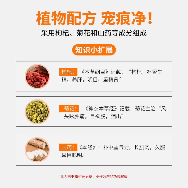 Pet scar net pet nutritional supplements with wolfberry chrysanthemum yam formula can be used with Shiqu cat eye drops