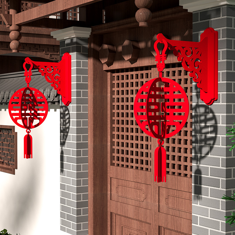 1 wall hanging + 1 Xiangyun Xi lantern (non-woven material)