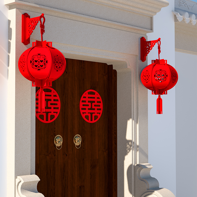 Hi word decoration Chinese style wedding wedding room decoration set big red lantern hanging pendant outdoor balcony woman