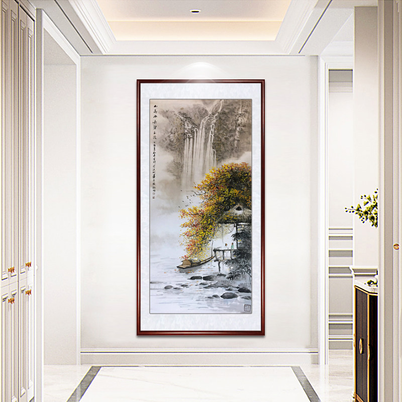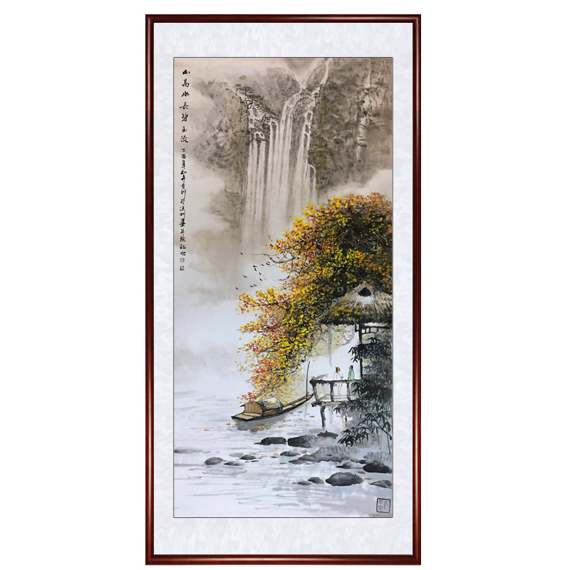 Famous teacher Li Youxun pure hand-painted Chinese painting landscape painting lucky office painting porch Chinese mountain high water long decorative painting