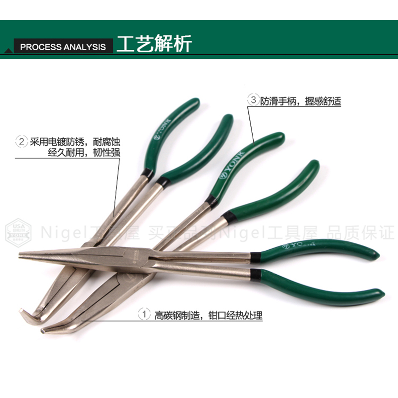 York lengthened tip-type sharp-mouth pliers 45 90 degrees elbow tip pliers angle pliers O-type grip pliers