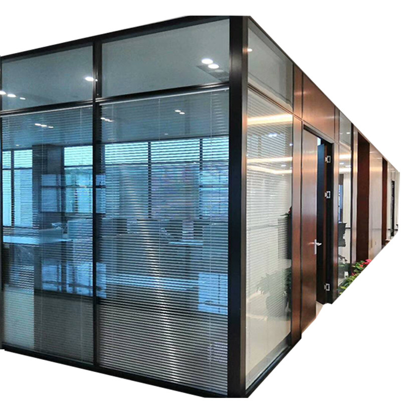 Office glass High partition hollow soundproof partition wall transparent frosted screen aluminum alloy double glass shutter partition wall