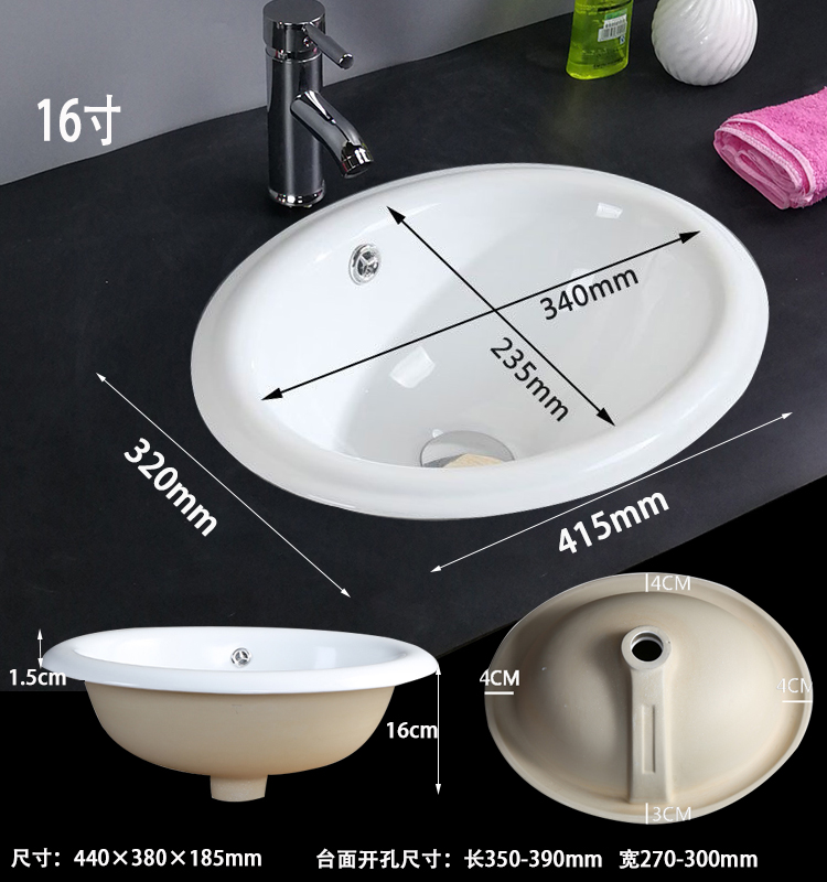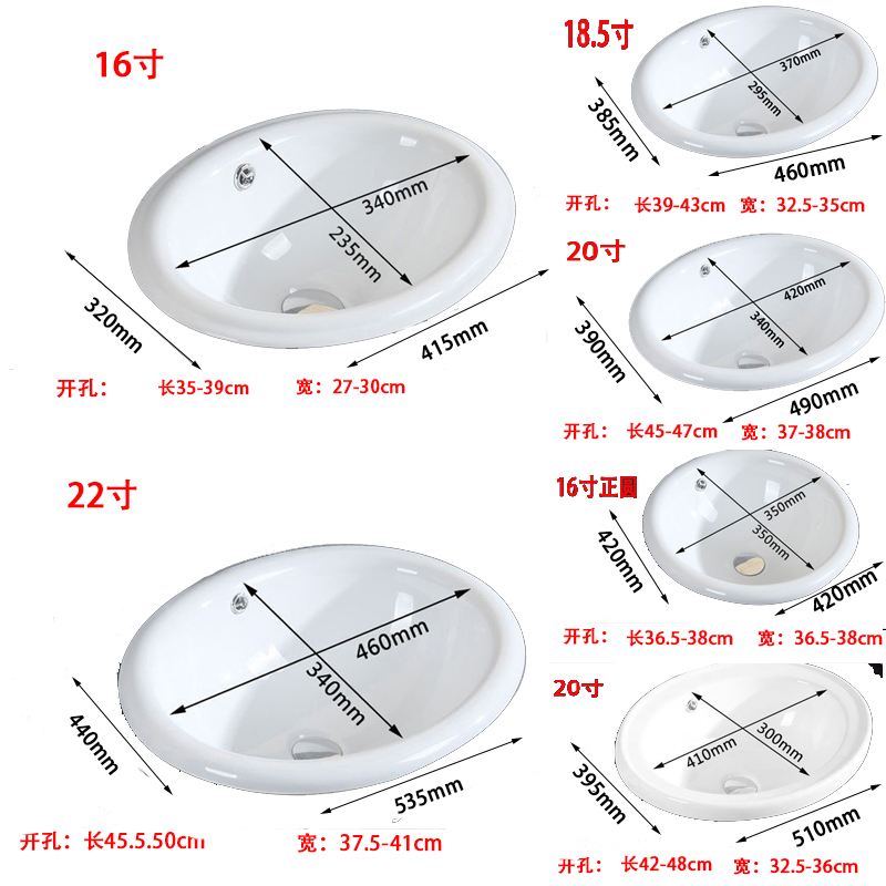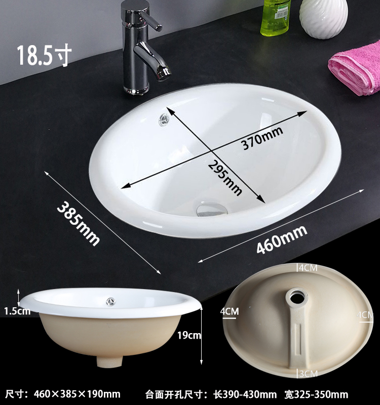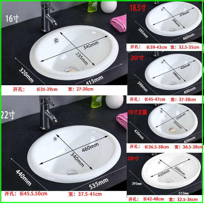Taichung basin semi-embedded ceramic washbasin oval washbasin balcony washbasin powder room on-counter basin size