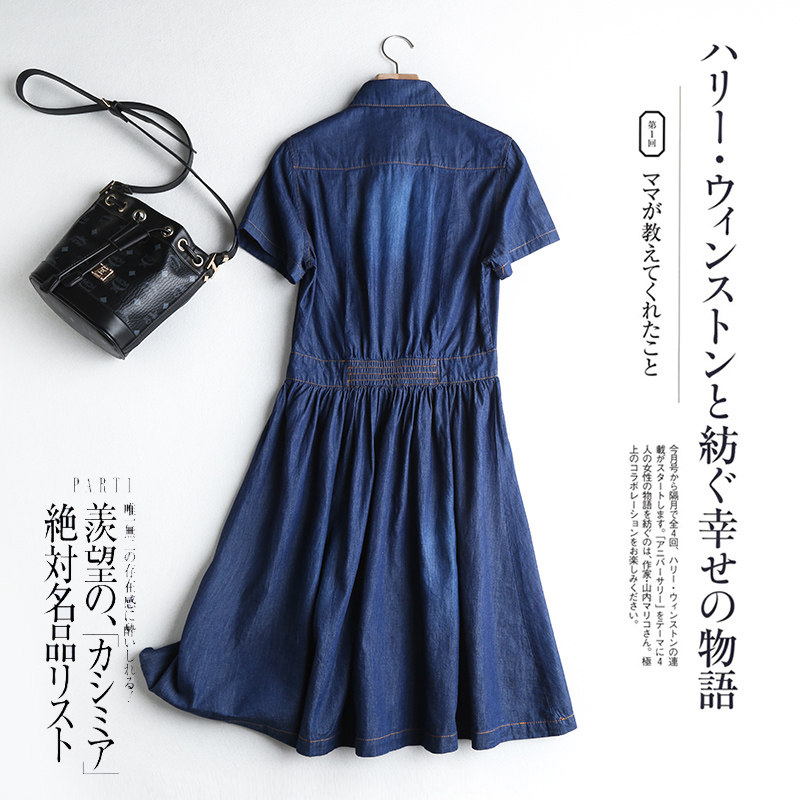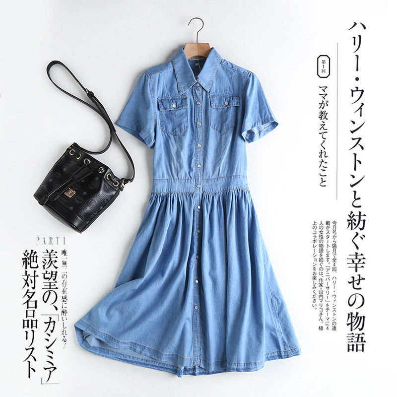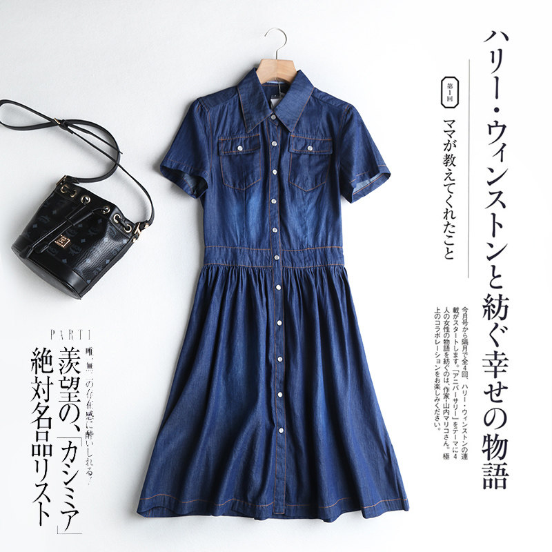 Tencel Denim Dress Women's Spring New Korean Version Slim Waist Large Size Thin Washed A-Line Skirt