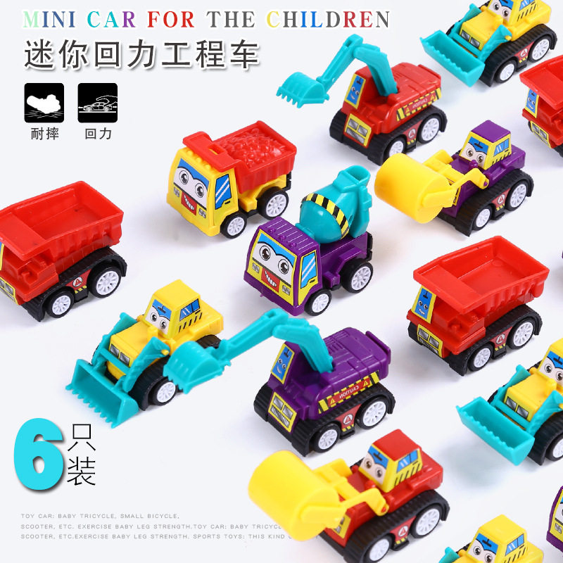 6 One bag Costume Engineering Car Children Creativity Toy Car Model Gift Cartoon Inertia Back Force Car Cover Toy