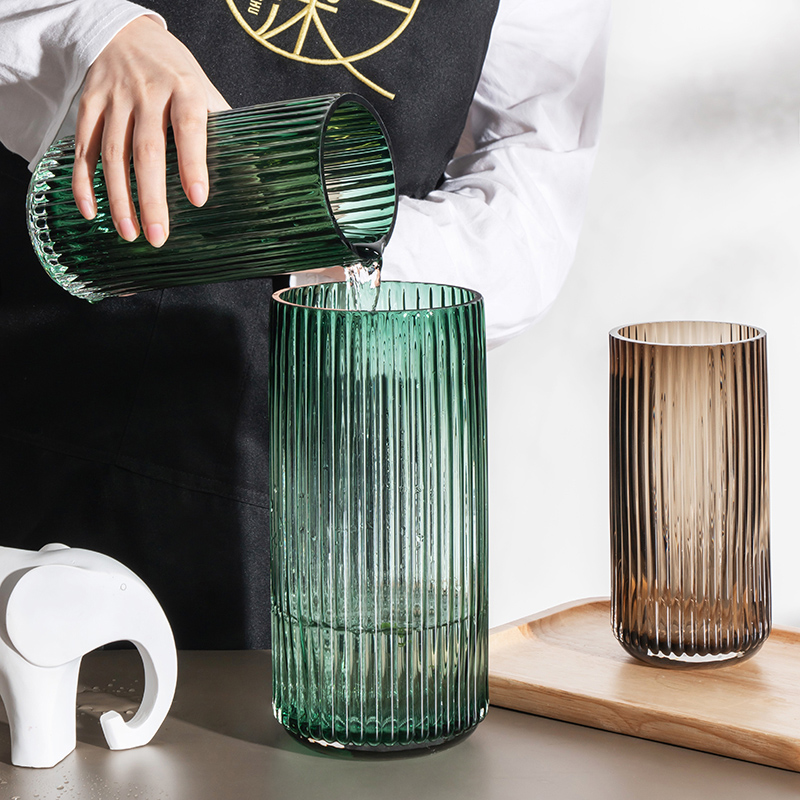 Nordic minimal creative glass vase transparent Roman column flower living room table plug vase decoration