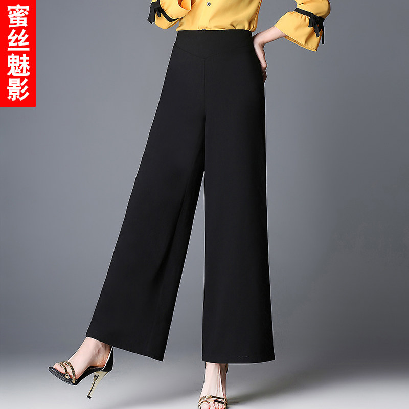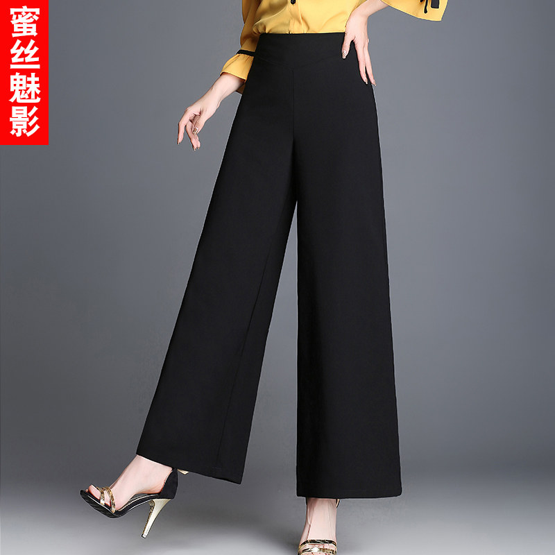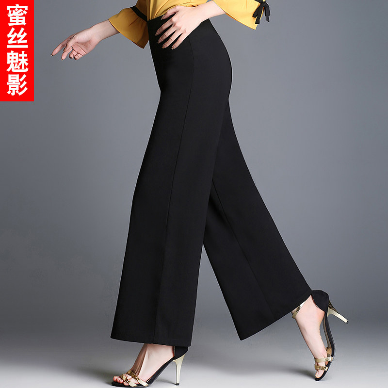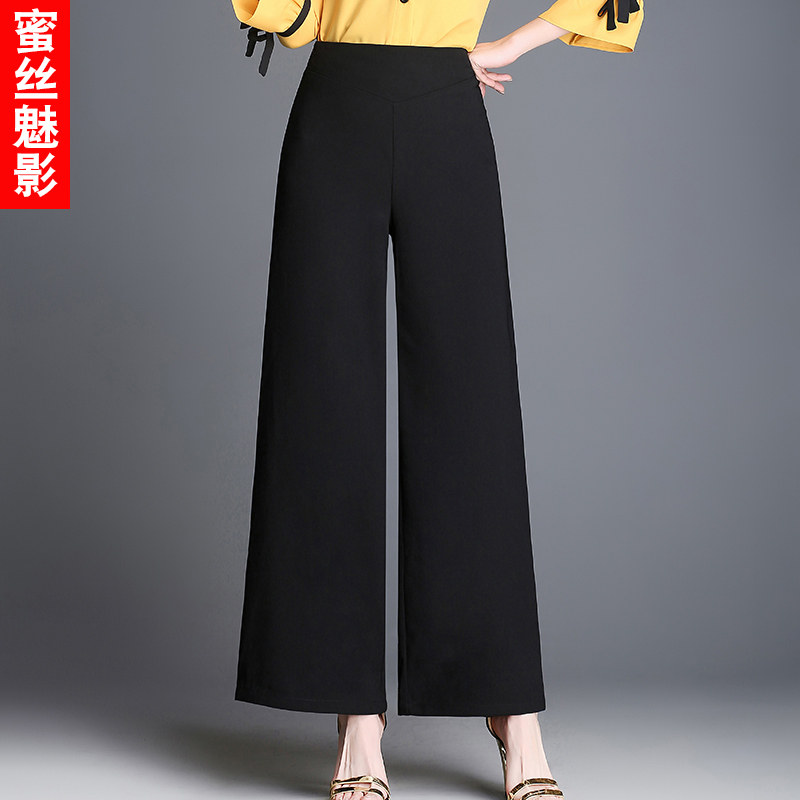 Wide leg pants women's autumn and winter casual drape high waist nine points black straight pants 2022 new thick woolen pants