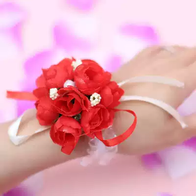 Bride wrist flower wedding supplies Red Chinese bridesmaid sisters hand flower Korean wedding simulation wedding bracelet flower