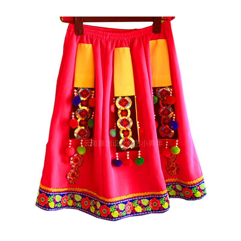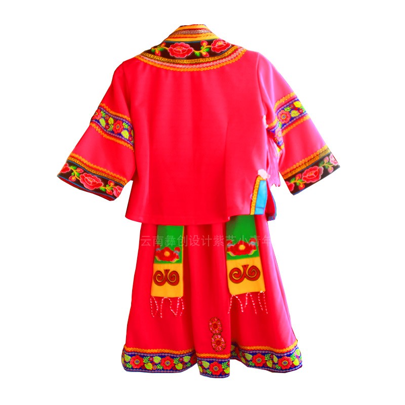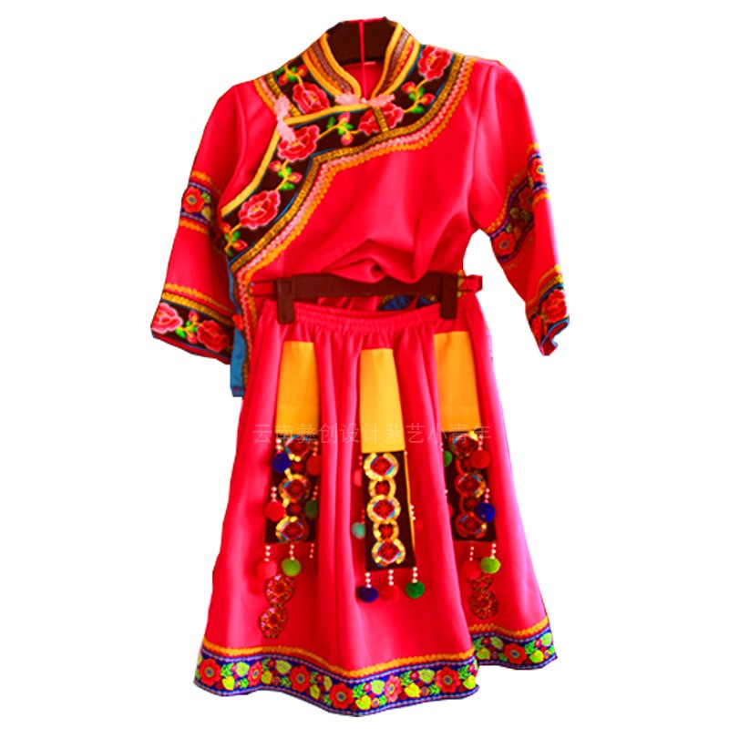 Ethnic minority clothing Children's suit Chuxiong dance Yi clothes Yi girl skirt Yunnan embroidery flowers