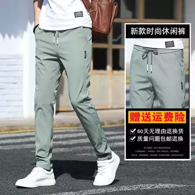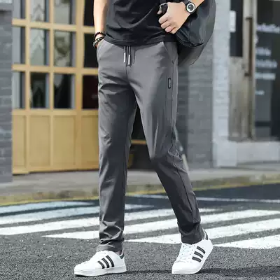 2021 New light gray men's pants sports casual pants men's straight loose Autumn Spring and Autumn style plus velvet trousers summer pants