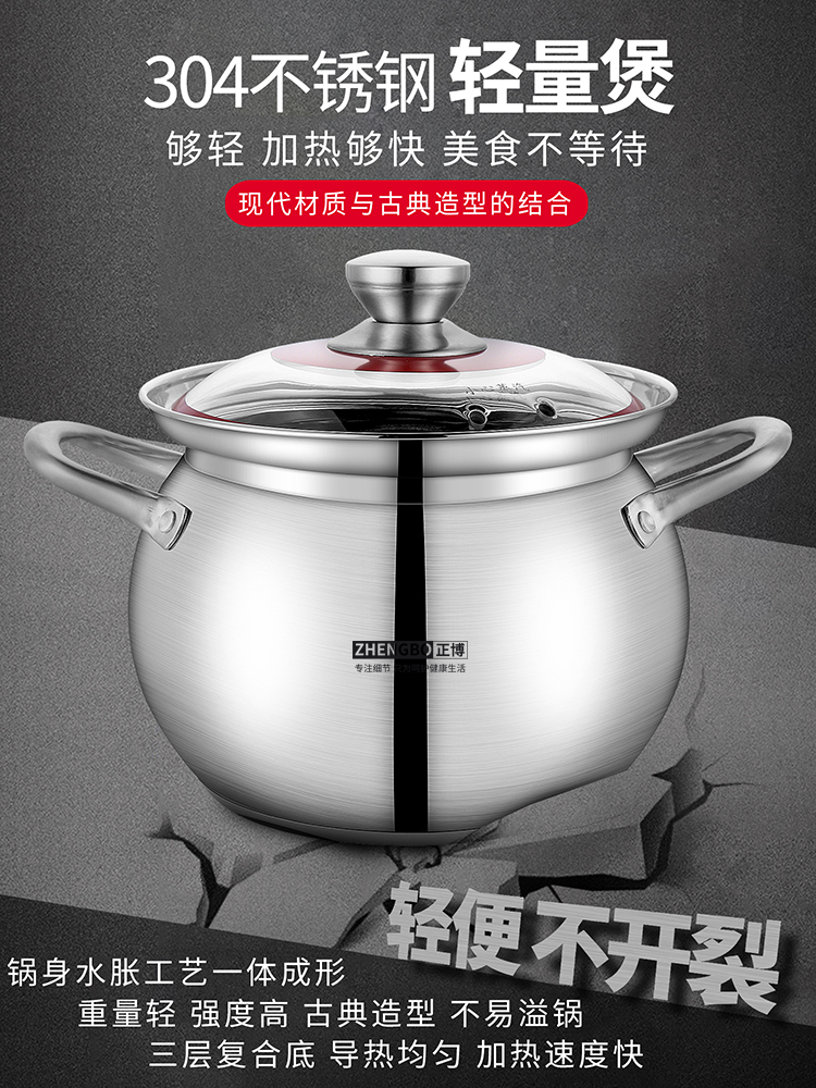Soup pot 304 stainless steel home soup saucepan with high temperature and light weight saucepan cooking pot soup gas induction cooktop cooking saucepan