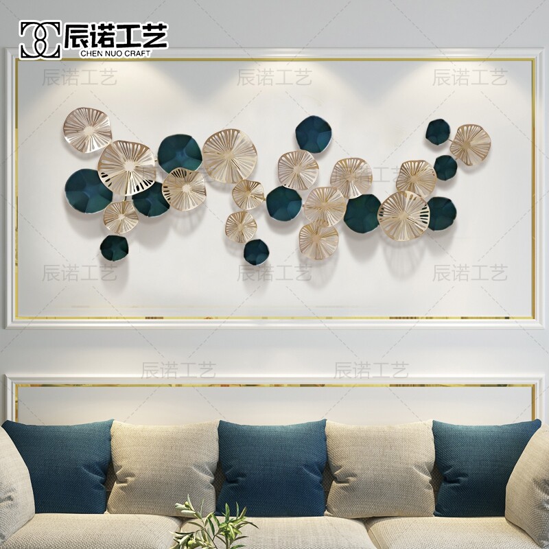 Nordic living room sofa wall decoration wrought iron lotus leaf wall decoration restaurant wall hanging background wall creative wall decoration pendant
