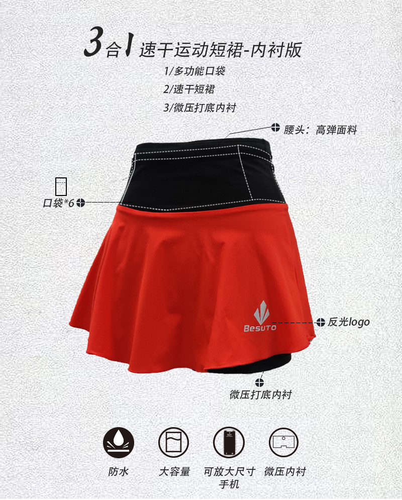 Besuto North Stu running fitness sports cross-country marathon Compressed water bag short skirt Fake two small red skirts