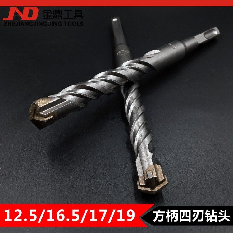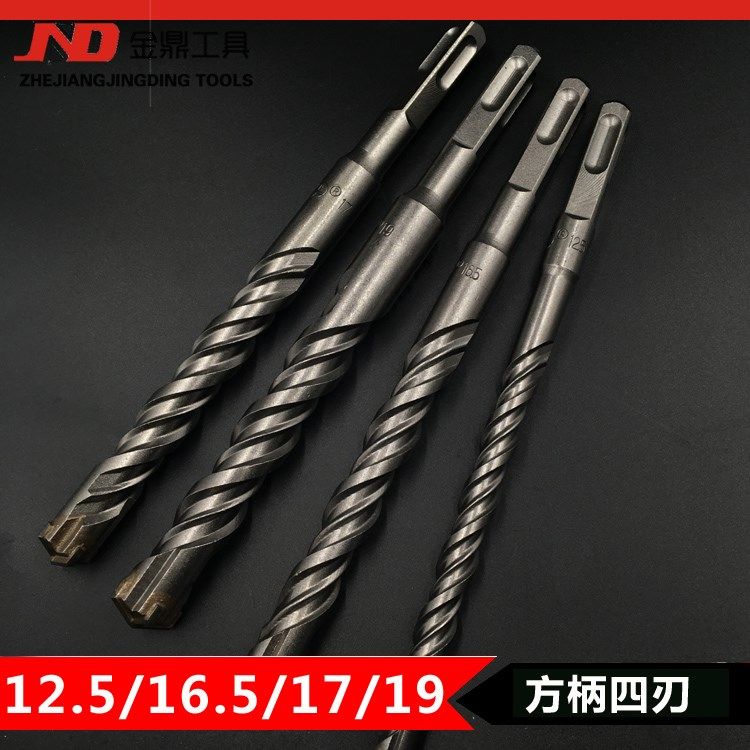 Four-pit square impact drill bit punching alloy electric hammer drill bit cross four-edge square handle 4 pit 12 5 16 5 1