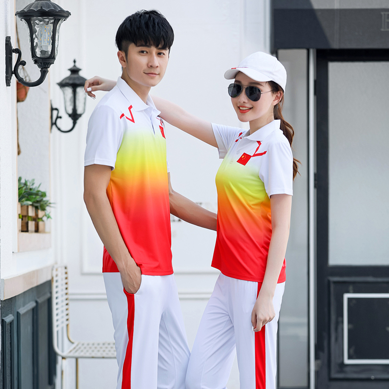 Sports Suit Men's And Women's Squares Competition Suit Casual Thick Cotton Outdoor Running Short Sleeve Long Pants Fitness 2 pieces of custom