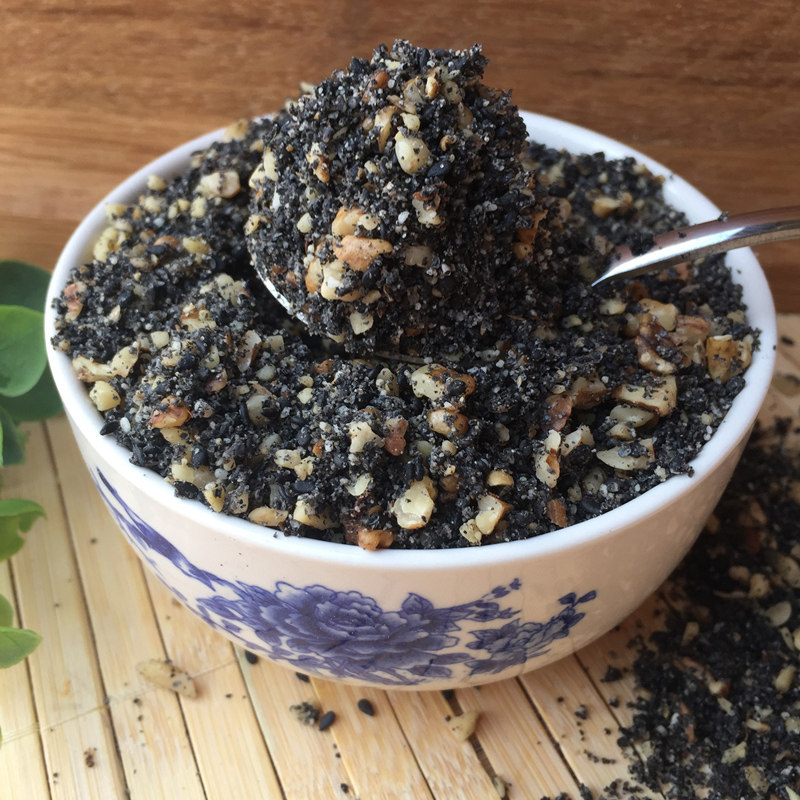 Black sesame walnut to dry and eat the powder.