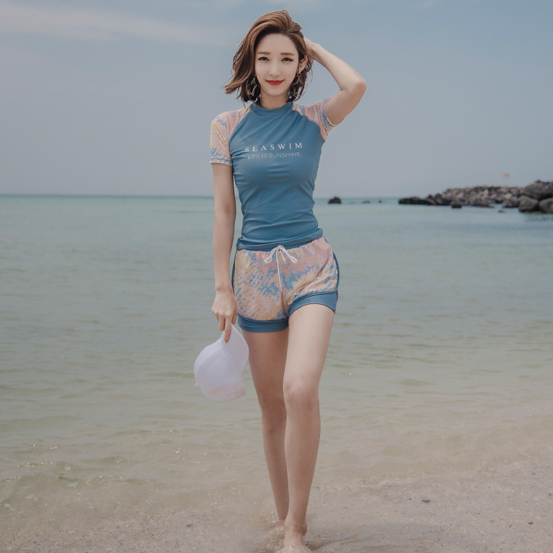 Sports Swimsuit Woman Two-piece South Korea Ins Wind Long Sleeve Blouse Sunscreen Sunscreen slim spa swimsuit conservative