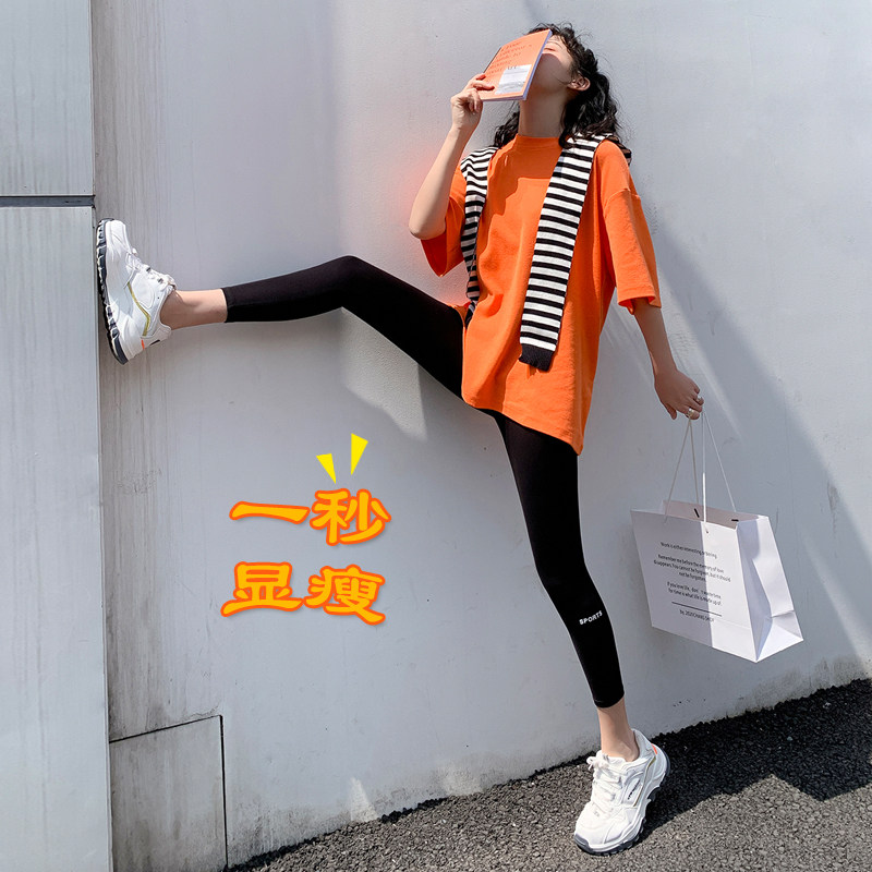Pure cotton inner pants, women's outer wear, high waist, thin nine points, small feet, tight elastic sports, spring and autumn thin section eight-point pants