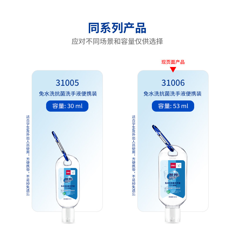 Able 31006 5 Free Wash Hand Sanitizer Portable with hanging buckle 75% Alcohol germicidal Sterilized Gel Carry-on